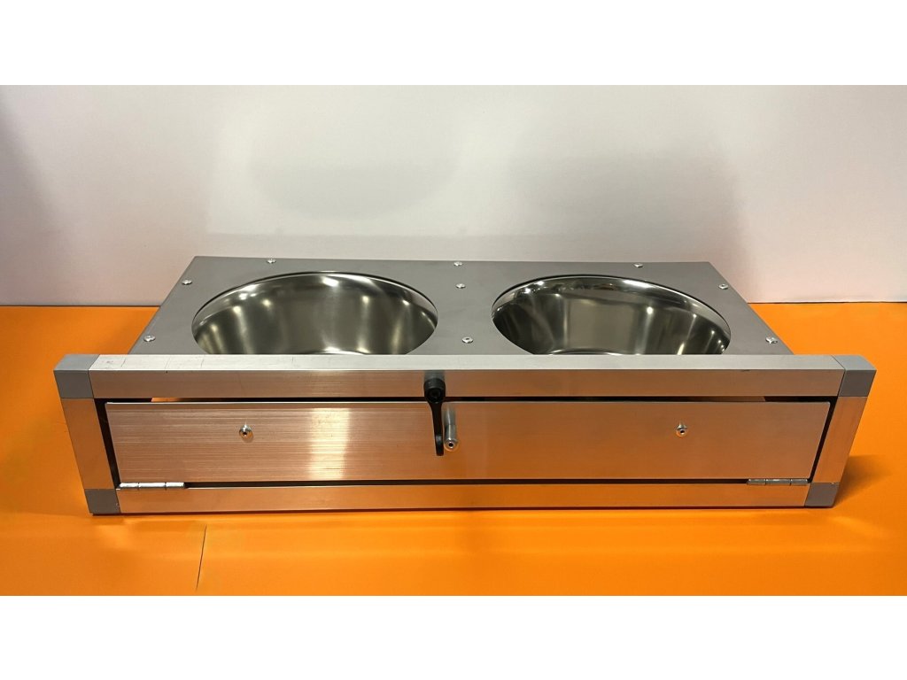 Krmný pult obsahuje: jednu misku o objemu 1500 ml na vodu, druhou misku o objemu 1500 ml na ovoce, zeleninu.